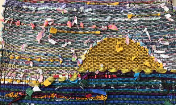 Also, Jennifer Edwards has installed a tapestry weaving exhibit for Ordinary Time titled, Woven Together. You may read about the weavings and the process in making them on her blog HERE and HERE. As you may recall Jennifer used articles of donated clothing to make these weavings. In so doing she has visual captured the way lives are woven together. She has third and final post explaining the tapestries to come out soon. Have a look at images below.